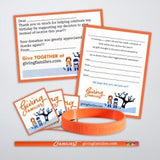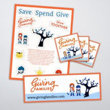 In addition to the Birthday Party Pack and 13 Save/Spend/Give Piggy Bank Sticker sheets for the party attendees, your family's name will be added to our Familiar Families page along with your personalized statement of what "giving" means to you.